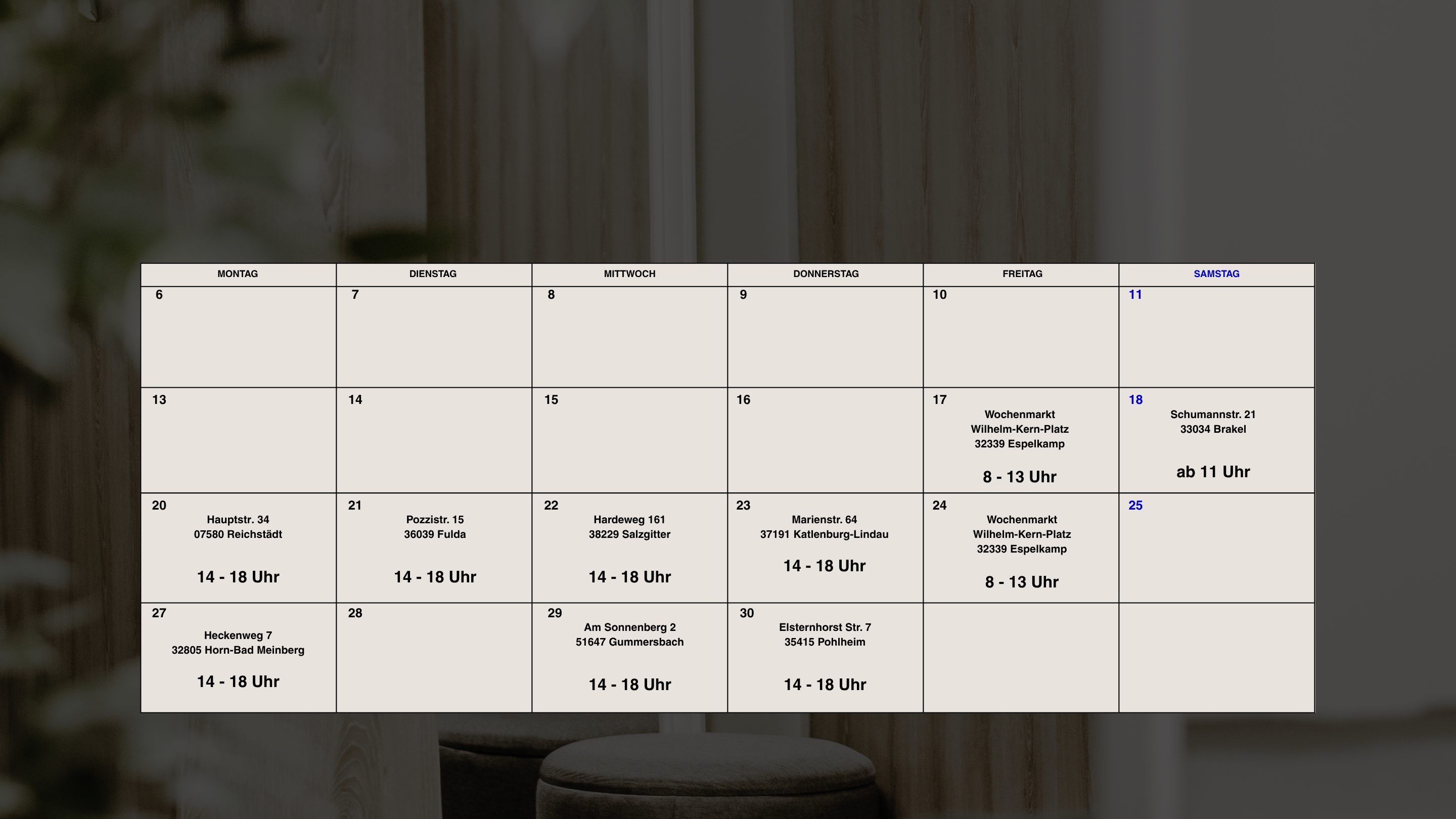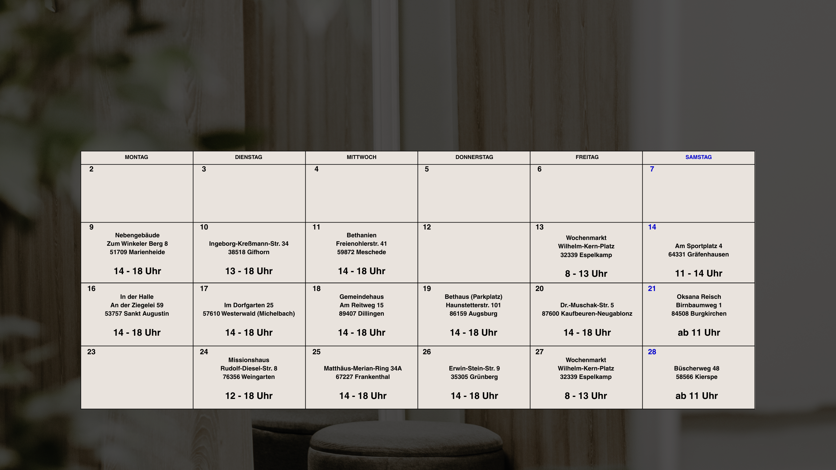 Mo-Fr: 14-18 Uhr